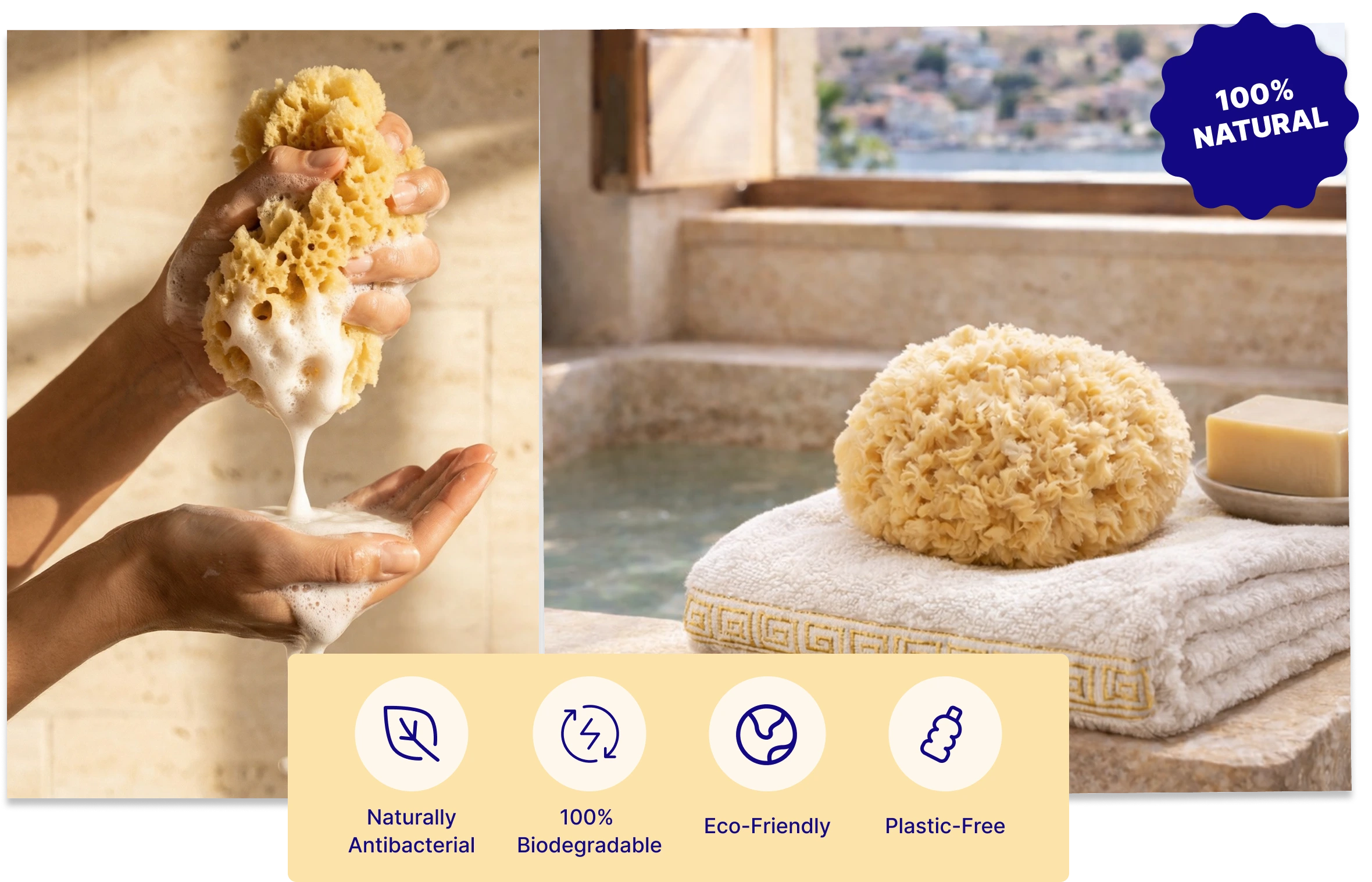 I love my new ritual set. These sponges are simple divine. I have let all my friends know. I think of Greece every time use them!